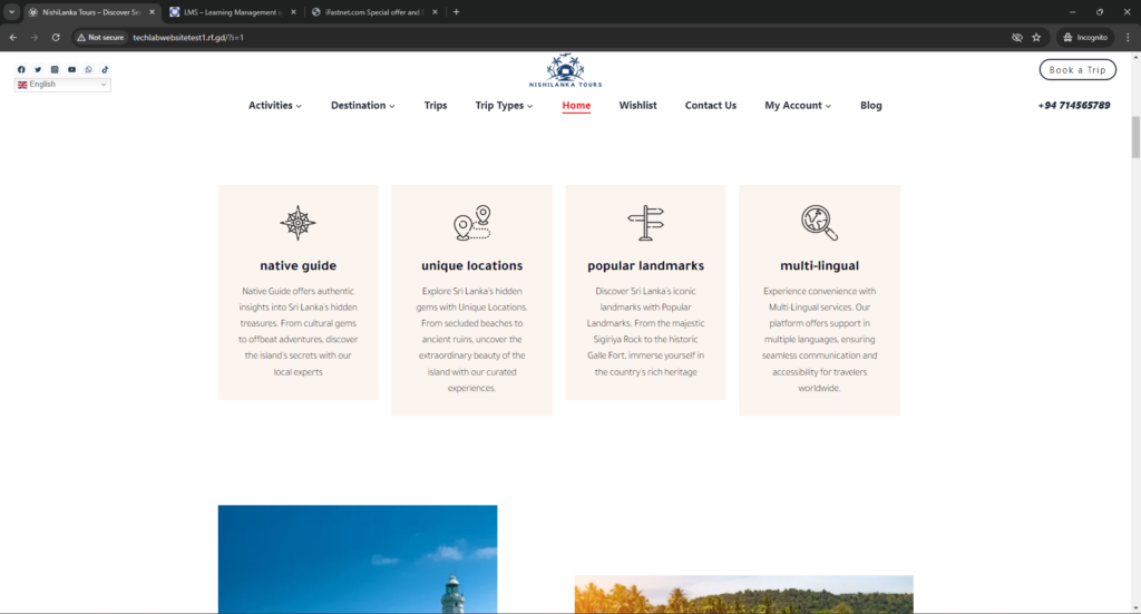 Nishi Lanka Tours embodies the spirit of adventure and exploration, offering travelers a gateway to the rich cultural heritage and natural wonders of Sri Lanka. Developed on the versatile WordPress platform, Nishi Lanka Tours provides a comprehensive suite of features tailored to meet the diverse needs of tourists seeking unforgettable experiences in this tropical paradise.