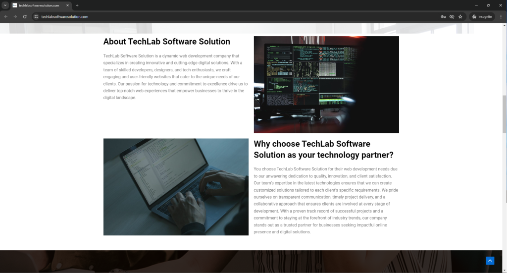 Project Title: TechLab Software Solutions – Business Website – www.techlabsoftwaresolution.com